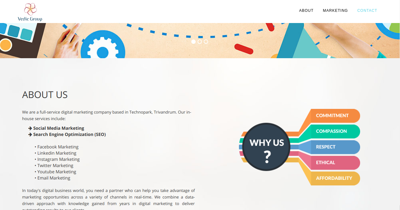We are a full-service digital marketing company based in Technopark, Trivandrum. Our in-house services include: 1. Social Media Marketing 2. Search Engine Optimization (SEO)